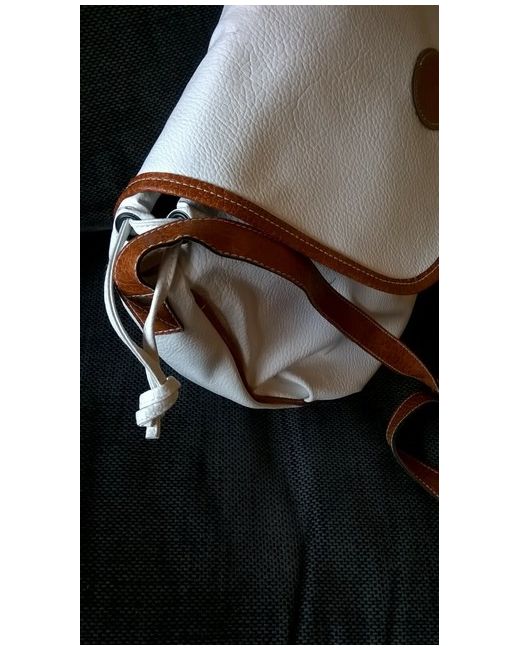 This medium-sized satchel handbag by DOLCIS has a faux leather exterior in white with tan edging, giving it an elegant and stylish look. The bag features a drawstring with metallic closure and a magnetic closure button for added security. The interior is lined with cotton and includes an inner drawstring, making it practical for everyday use. With adjustable straps and a Chelsea design, this satchel is suitable for various themes such as school, holiday, or a day out in the city.