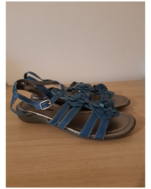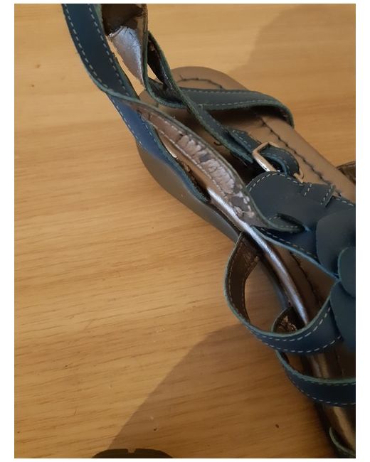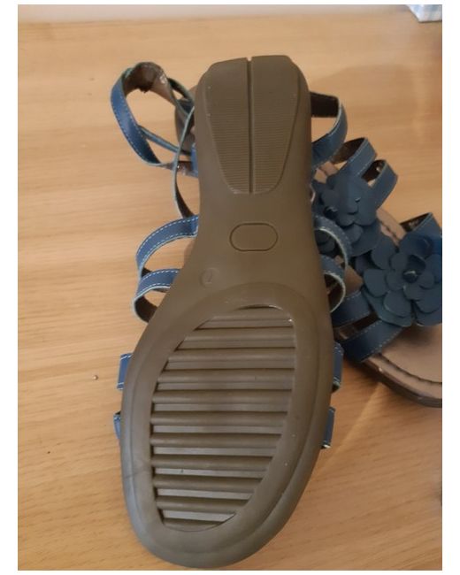 blue size 7 sandals, unworn but has flaking to the inside material, please see photo.