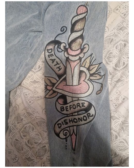 Brand new with tags light blue with pink embroidery 32inch waist. Gorgeous jeans. For sale elsewhere