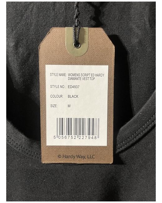 The Ed Hardy Vest Top in size medium is a stylish and versatile addition to any woman's wardrobe. This black sleeveless top features the iconic Ed Hardy brand logo, adding a touch of luxury to any outfit. With a regular fit and solid pattern, this top is perfect for pairing with jeans or leggings for a casual look, or dressing up with a skirt or trousers for a more polished finish. Made for women who want to make a statement with their fashion choices, this vest top is a must-have for any streetwear enthusiast.