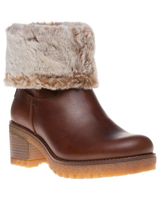 Womens Panama Jack tan Piola heeled boots with waterproof greased nappa leather upper and fur warm inner lining.