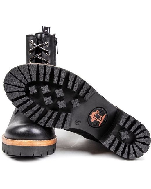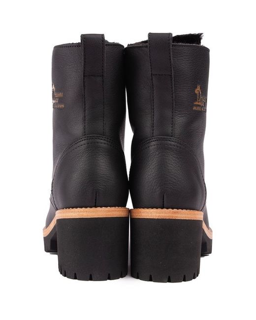 These Women's Black Panama Jack Padma Ankle Boots With Leather Upper Are Just The Treat You Need. They Feature Decorative Striped Laces With Metal Eyelets And Embossed Branding To Heel And Tongue. These Premium Heeled Boots Have A Strong Heel Pull Tab, Faux Fur Lining To Keep Your Feet Cosy, A Leather Sock And 6cm Block Heel With A Rubber Lugged Sole.