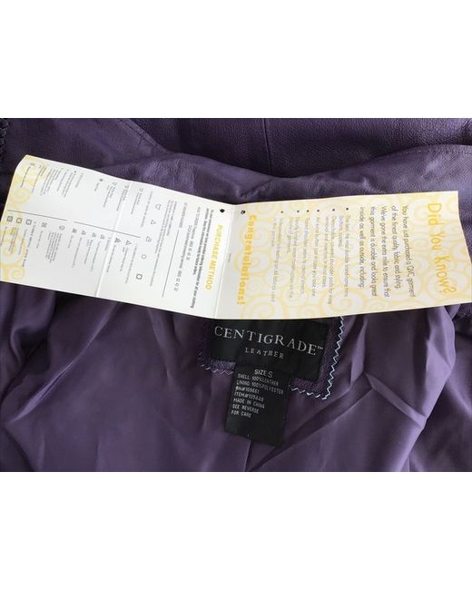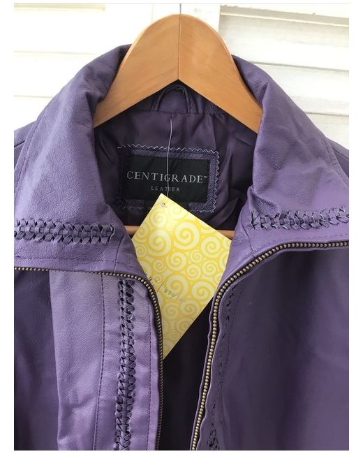 Centigrade Dark purple leather jacket with zip front and pockets. Size Small.
