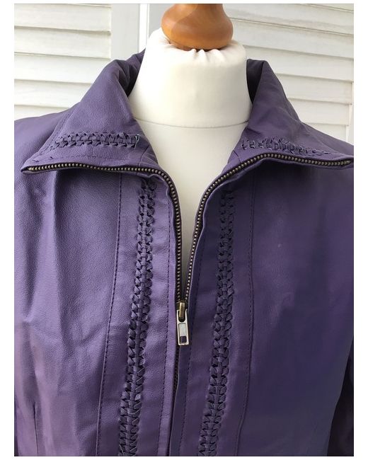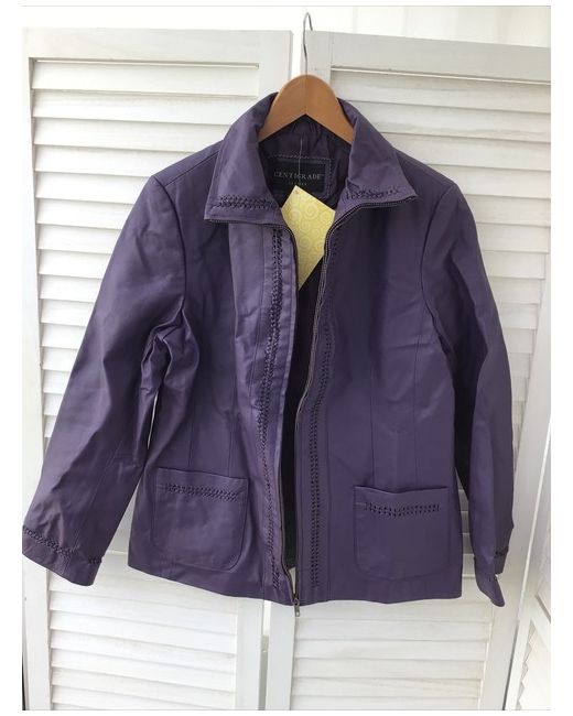 Women's Purple QVC leather jacket Coat S small pockets zip front BNWT Cutwork