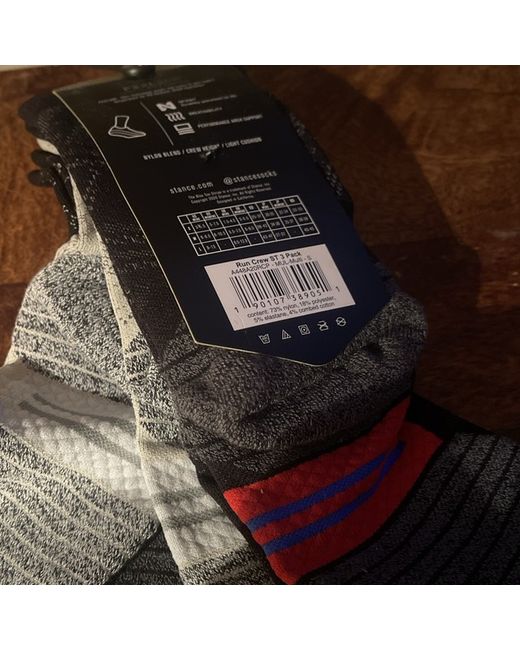 All good things come in 3's. Running is an everyday pursuit. Get prepared for the week ahead with the Stance Run Crew ST 3 pack. Three premier pairs of our finest performance-mined socks, designed for avid runners everywhere. 3 Pairs in one pack. Features: - Fabric: 73% Nylon, 22% Polyester, 5% Elastane (may vary with color) - Breathable perfomance mesh with reflective logo for increased visibility - Left/Right Engineered Arch Support - Reinforced heel & toe with FEEL360 Technology - Recommended: Machine Wash in 40 °C / 104 °F. Avoid Bleaching or Ironing the socks. Socks will last longer if you keep them out of the dryer. SKU: A448A20RCP-MUL Material: Nylon Color: Multi (Black/Grey/Black