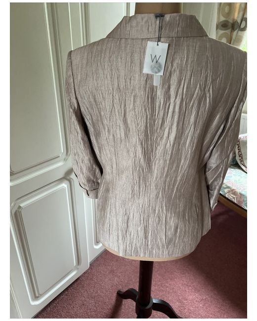 Upgrade your wardrobe with this Windsmoor silk look jacket in cafe au lait, perfect for any weather. This jacket is a regular size and is made of 86% linen, making it both stylish and comfortable. The jacket comes in size 16. The Windsmoor jacket features a basic style and is perfect for any occasion. It would look lovely with trousers for a timeless classic look.
