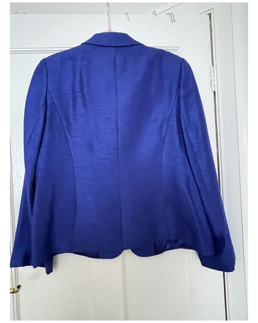 Beautiful, elegant jacket in a striking blue colour, machine washable shoulder pads, lovely material, there is also a dress listed that this goes perfect with if you wanted the whole outfit, collared with detailing on, button fastening. May smell of perfume due to storage.