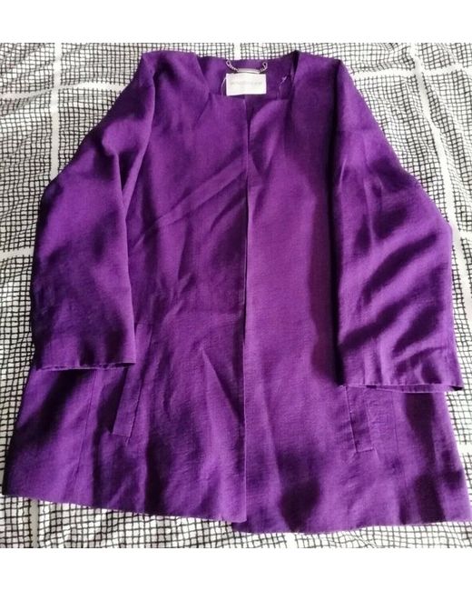 Ladies Windsmoor Purple Buttonless Jacket. - Made In China. - Dry Clean Only. - Lining: 100% Polyester. - Shell: 88% Viscose, 12% Nylon.