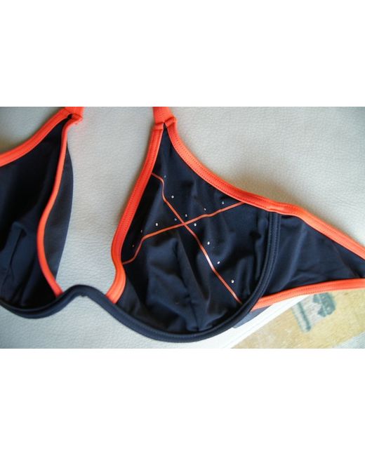 The front and back waist band of the bikini brief is edged with a narrow band of the bright orange elasticated fabric, doubled over and secured with a double row of orange stitching - this also forms the string sides of this bikini brief.