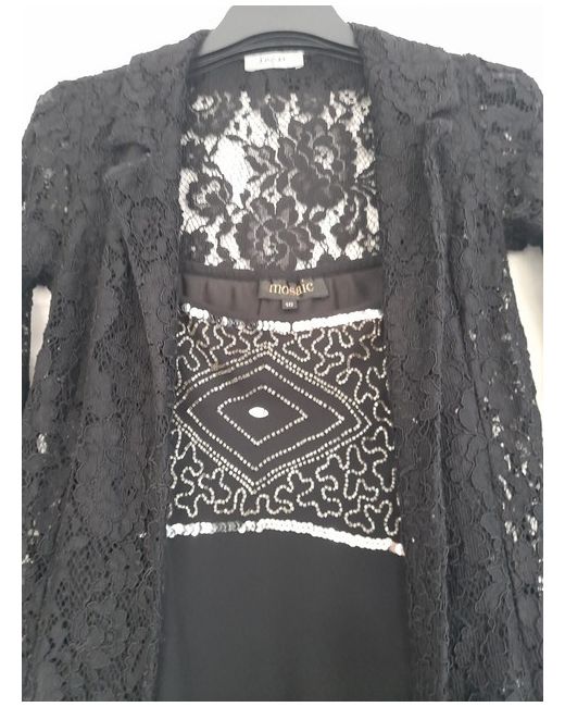 Add a touch of elegance to your wardrobe with this black lacy jacket from Soon. The mid-length jacket is perfect for any occasion, whether it's a party or a casual outing. The jacket features a single-breasted button and an open design that adds a touch of sexiness to your outfit. Crafted from a blend of Viscose/Nylon , this jacket is perfect for all seasons whether it's winter, autumn, summer or spring. The lace fabric type adds a unique texture to the jacket, making it stand out from the crowd. This jacket is available in size 8 and is suitable for regularsized women. Make a statement with this stunning lacy jacket today! Worn once like new condition see photo's on how to compliment your wardrobe with one stylish jacket.