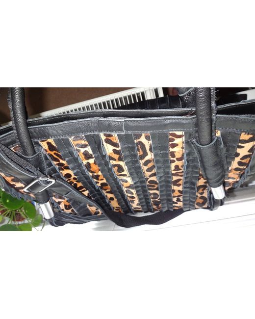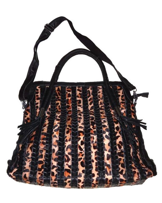 Women's Black Smith Canova Mix Patchwork Genuine Leather Ponyhair Shoulder Bag Xlarge