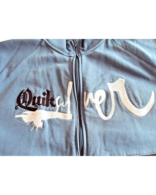 QUICKSILVER SURFER. STRIPED OUTER HEM WEBBING WITH INNER QUICKSILVER GRAPHICS. BOUGHT IN THE 1990'S. BLUE/CHARCOAL JACKET. Length - 75cm / 29" down back. Size XXLARGE (20/22'sh). From a Non-smoking, Pet-free household.