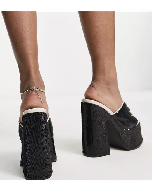 Black Ivory Sequin Flower Platform Chunky Mules 7 40 New