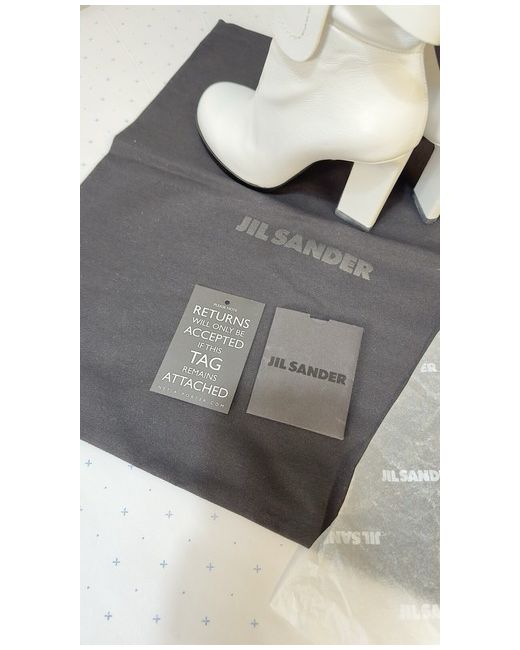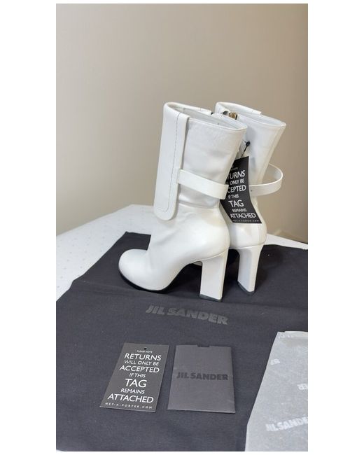 Jil Sander White Leather Boots Brand new with tag. They were made in Italy, and they were made with genuine soft leather. A bit too small for me. The heel height is 9cm. The size is EU35/UK 2. They came with the original box and dust bag and packing paper. It’s from a smoke and pet free home. Return is not accepted.