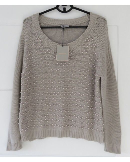 Designer Grey Knit Knitted Beaded Pullover Jersey Jumper Top L Large New