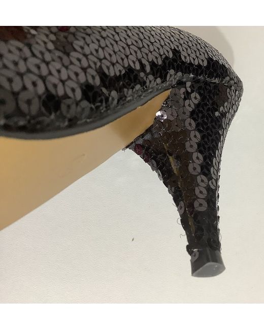 Black Sequin Encrusted Round Pointed Toe Heels 4 Brand New