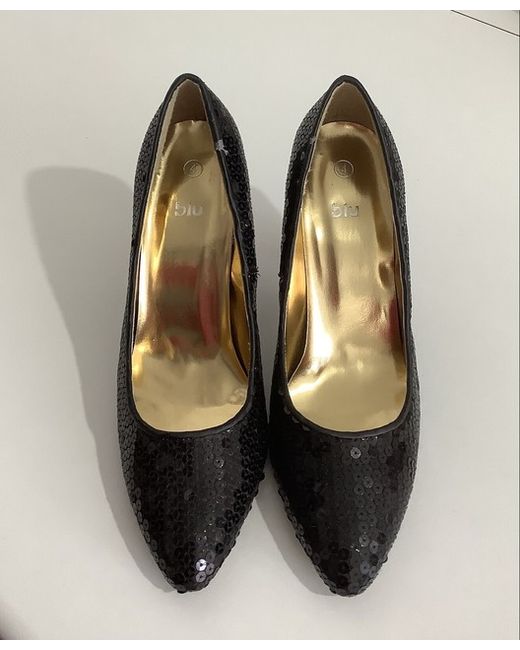 Women's Blue Black Sequin Encrusted Round Pointed Toe Heels 4 Brand New