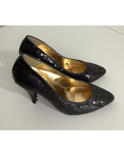 Sparkle Gold Black Faux Suede Pointed Toe Heels 7 Brand New