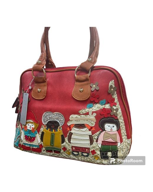 Women's Red Colour Cartoon Character Patch Work Handbag With Adjustable Strap