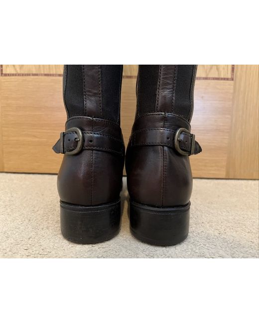 Jones Bootmaker. - Widest on the calf 15". - Lining: Faux Fur (lightly lining). - Top of the heel to the top of th boots 19". - Heel (bottom) to the top of the boots 17.5". - Colour: Dark Brown. - Outer Material: Leather.
