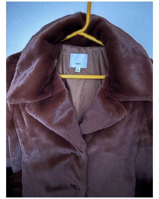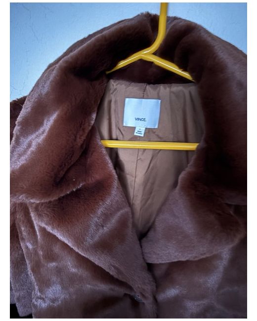 Women's VINCE faux fur jacket Colour Rust brown Length: short Faux fur shell - 100% polyester Lining - 100% polyester Rib - 90% acrylic / 8% polyester / 2% Elastane