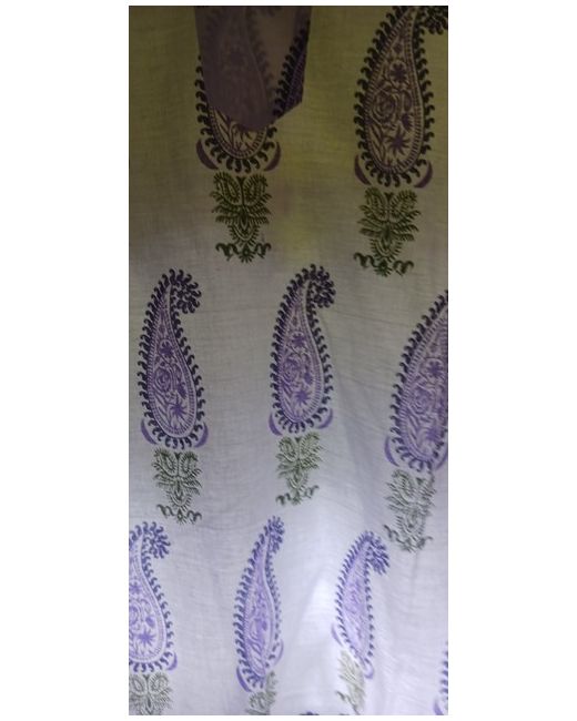 Add a touch of Indian flair to your wardrobe with this Kushi white cotton Tunic. Side splits for comfort. The 3/4 casual sleeve and purple paisley print accents on the white cotton fabric make it a versatile piece that can be dressed up or down.