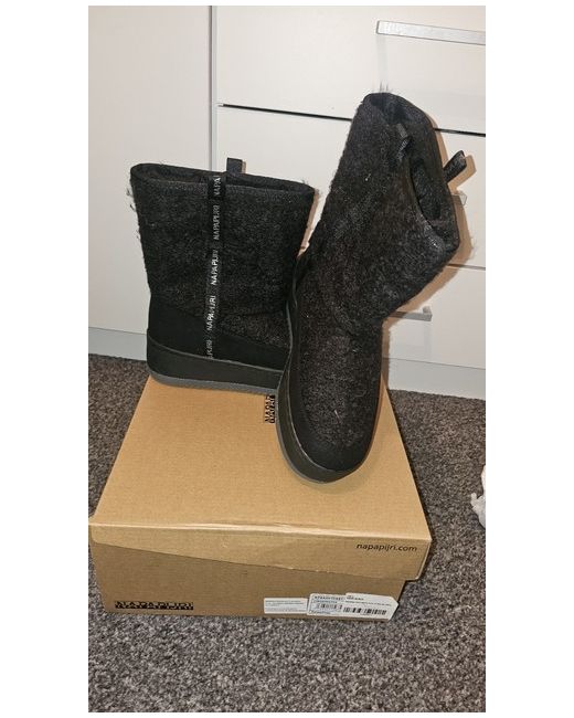 Napapijri boots is a stylish choice for winter. They are a UK size 4 with a round toe shape, made of black faux fur material. The booties have a standard shoe width and are perfect for women looking for a fashionable and comfortable option to keep warm during the colder months.