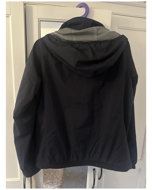 This is a women's Napapijri rain coat in black, size L. The jacket is brand new with tags attached and is designed in a regular fit for women. The outer shell material is not specified but is likely to be waterproof given that it is a rain coat. This stylish jacket is perfect for keeping dry and looking fashionable in wet weather, making it a practical and trendy addition to any woman's wardrobe. Size L