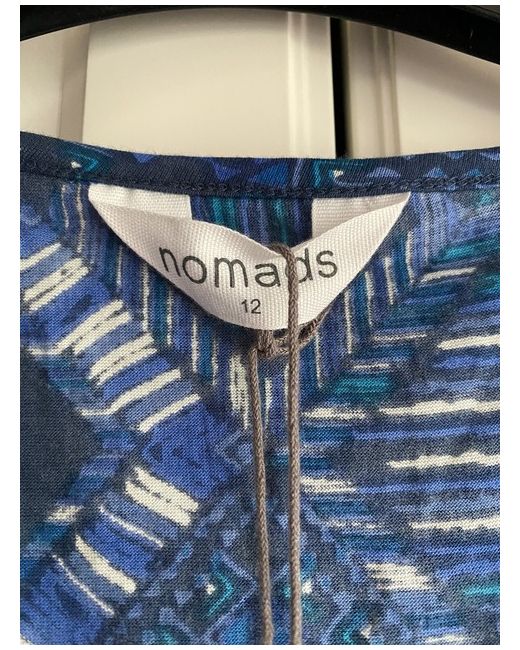 Nomads blue patterned top size 12 BNWT Gorgeous patterned top by Nomads. Made in soft stretchy organic cotton. Slightly flared, scoop neck , rounded hemline and short sleeves. Easy and flattering to wear. It measures 20” pit to pit, 45” around the hem and 26” long at the longest point. Brand new with tags.
