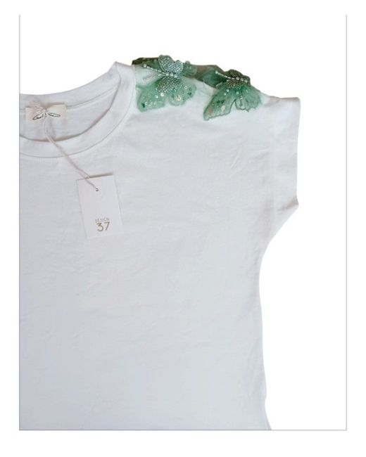 Beautiful blouse with short 3D sleeves, butterflies on the shoulders. Chest 54cm. long 64cm. 95% cotton 5% elastane.
