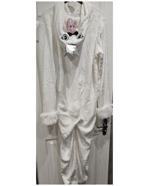 Get ready to embrace the winter season with this stunning Loungeable women's one-piece. The elegant white polyester fleece material is adorned with a beautiful swan character, adding a touch of charm to your nightwear collection. The long sleeve and hooded design ensures maximum comfort and warmth, making it perfect for chilly nights. The garment is machine washable and features a zip closure with fur trim accents, giving it a chic and stylish look. This size M one-piece is perfect for any woman who wants to stay cosy and fashionable during the holiday season. Add it to your wardrobe collection today and experience the ultimate comfort and style.