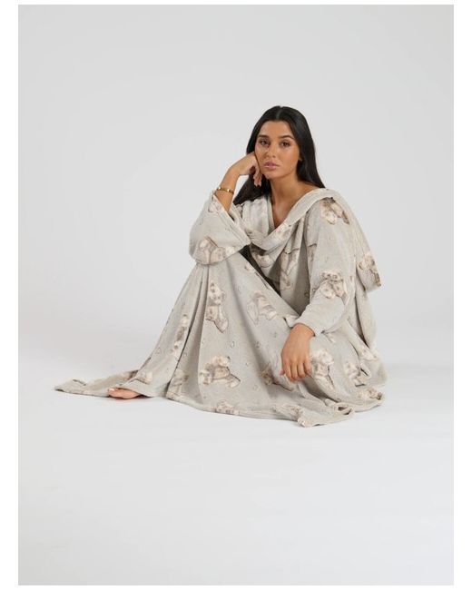 Embossed Teddy Bears Luxury Fleece Sleeved Blanket. Super soft & silky, flannel fleece fabric. Gorgeous, plush twist on the oversized snuggle top; this sleeved blanket is a unisex design that's perfect for autumn / winter to provide the ultimate feeling of warmth and cosiness.
