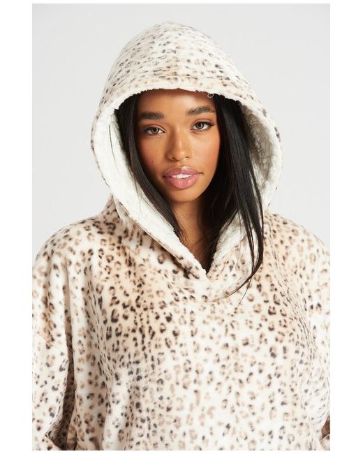 Loungeable Leopard Plush Fleece Oversized Hoody. Super soft, plush flannel fleece classic leopard print fabric. Hooded neckline lined with cream sherpa fleece for maximum heat retention. Stunning, ultra plush snuggle top; it's the ultimate comfort in loungewear piece for autumn / winter season that when wearing you will never feel cosier.