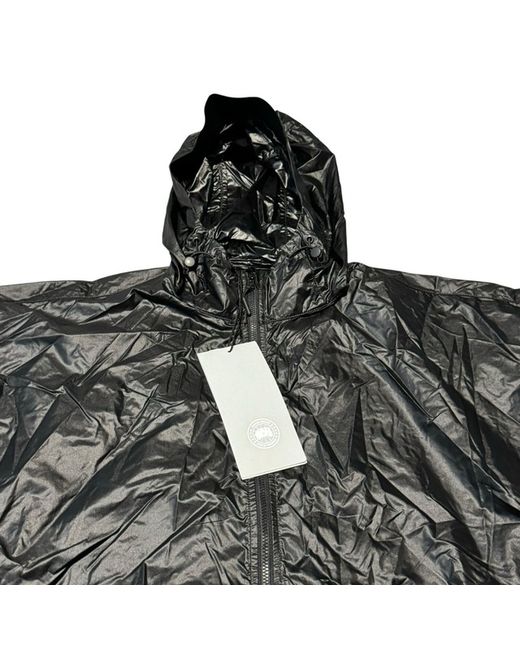 Canada Goose Rosewell Shell Jacket (Black). It features a mid-length cut at the base and a drawn-in hood, and is slightly fitted at the waist with long sleeves drawn in at the wrists. It closes with a zipper down the front”.