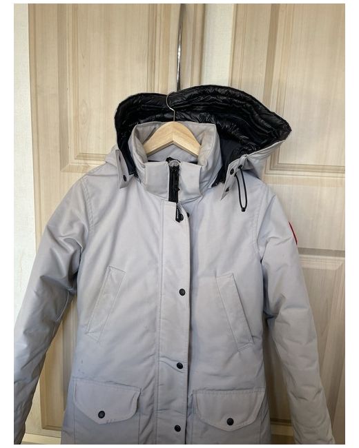 Stay warm and stylish this winter with this Canada Goose parka. Made with a durable nylon outer shell, this mid-length jacket is perfect for outdoor activities and extreme weather conditions. The grey colour and designer theme make it a versatile addition to any winter wardrobe. This women's size small jacket features the iconic Canada Goose logo and is perfect for those who love the outdoors and appreciate high-quality clothing. Whether you're hiking in the mountains or running errands in the city, this jacket is a must-have. Don't miss out on the opportunity to own this stylish and functional piece.