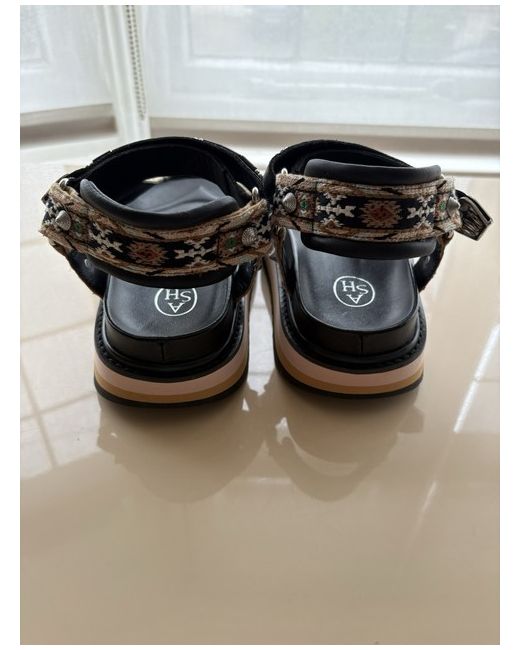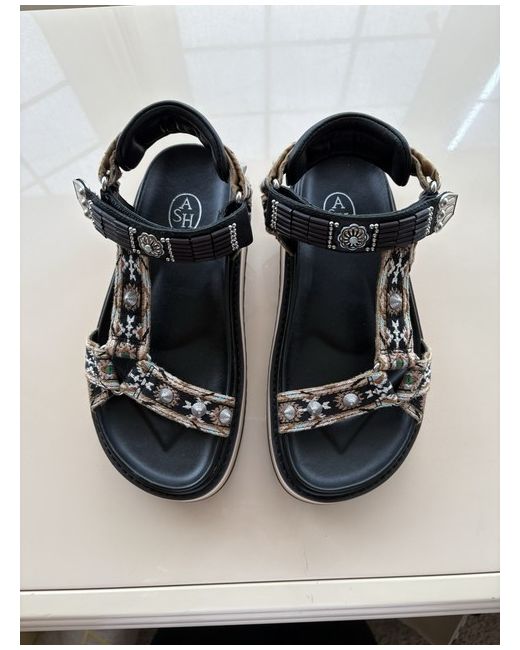 Ash Black Sandals Size 36 Velcro closing strap. Metal studs/flowers