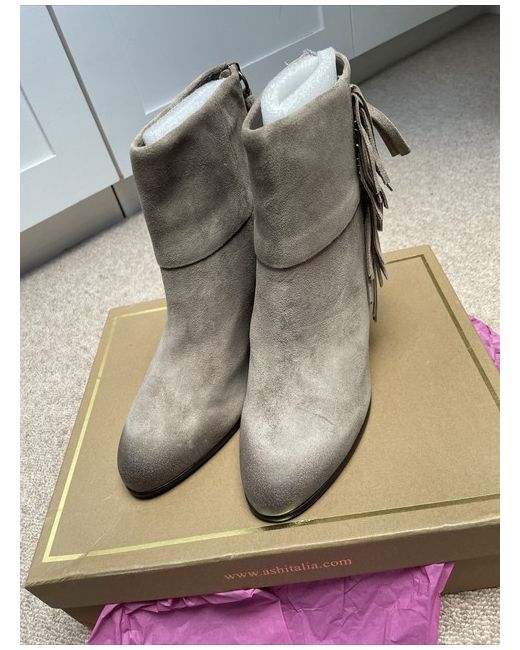 Elevate your fashion game with these stylish Ash ankle boots. Crafted from soft suede and adorned with tassels, these boots are perfect for any occasion. They feature a comfortable cone heel that is just the right height (5-7.5 cm) and an ankle-length shaft that is both practical and fashionable. The boots are brand new and come with the original box. Available in UK size 8 and EU size 41, they are a must-have addition to any fashion-conscious woman's footwear collection. Shop with confidence on eBay and add these gorgeous Ash ankle boots to your wardrobe today!
