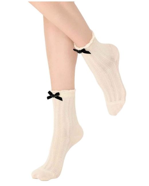 The pretty links pattern gives these socks an elegant and refined look, perfect for any occasion. The black velvet bow on the cuff adds a touch of sophistication, making these socks a distinctive accessory in your wardrobe.