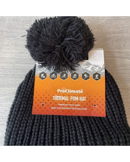 Women's Black ProClimate Hat Cable Knit Pom Bobble Beanie One