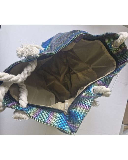 Introducing the Equilibrium Rainbow Metallic Tote Bag, a stylish accessory perfect for any woman. The bag features a mix of exterior materials with a blue metallic finish, giving it a unique and eye-catching look. The rope handle/strap material adds to the durability of the bag, making it a practical choice for everyday use. This tote bag is a great addition to any collection and is perfect for those who love to accessorise. The bag is designed with a rainbow theme, making it a fun and playful piece. It is ideal for carrying books, groceries, or even as a statement piece to complete an outfit.