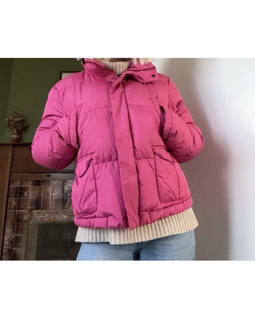 No stains or rips Perfect condition Four pockets Very warm! Size large, I am size XS in coats this would fit down to XS too! 5’4 height Down feather