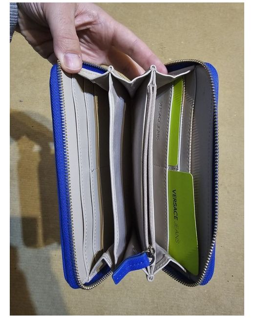 Elevate your accessories collection with the Versace Jeans Blue Wallet, a sophisticated choice for the modern woman. Crafted from supple leather, this wallet boasts a sleek blue hue complemented by the iconic Versace logo that adds a touch of luxury to your everyday transactions. Functional as it is stylish, this wallet features multiple credit card slots, ensuring your essentials stay organised in its sleek design. Perfect for those who appreciate the blend of elegance and practicality in their accessories, this piece is a versatile addition to any ensemble.Sold as it is. Please dont buy if you not agree. No returns.