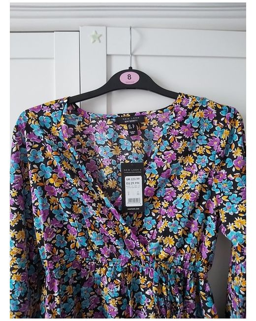 Fit and Flare | Peplum Style. New Look | Maternity | Size 8 | Fashion Top. Ditsy Floral Pattern | V Neckline / Wrap.