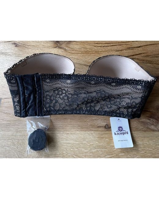 b.tempt’d Multiway Strapless Bandeau Style wired Bra Black/Beige 30DD. Beige with Black Lace overlay Side fastening at back