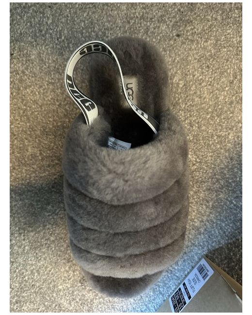 Brand: Slide UK Shoe Size: 7 Department: Women Type: Slipper Style: Slider Upper Material: Faux Fur Colour: Grey These Ugg Fluff Yea Slides in a size 7 are new with box. They feature a faux fur upper material and come in a stylish grey colour. Perfect for women looking for a comfortable and cozy pair of sliders.