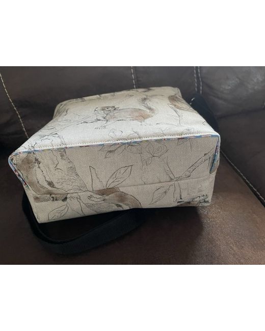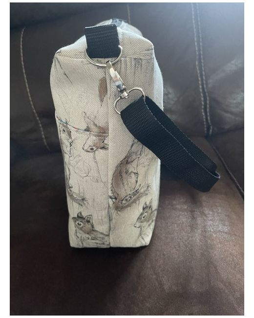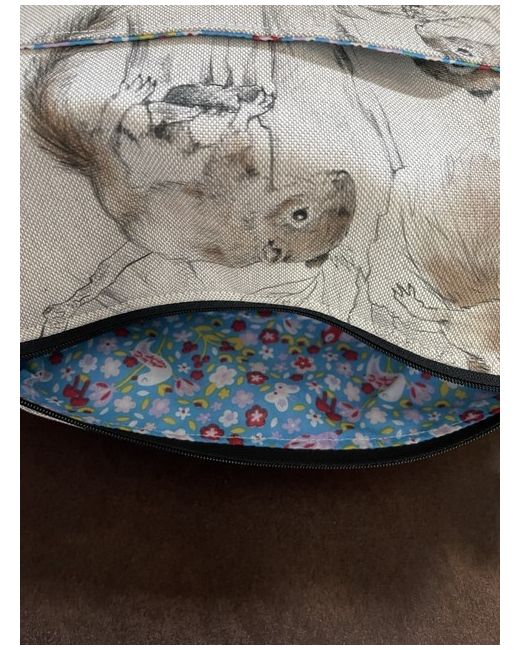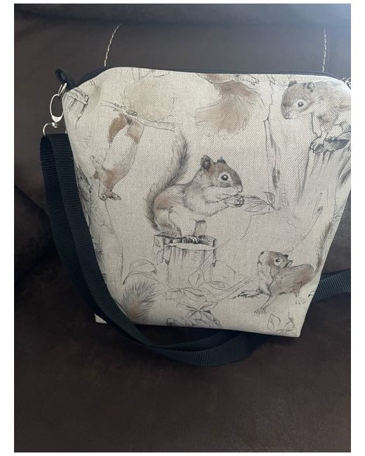 This bespoke handmade shoulder bag features a charming red squirrel design on a cotton canvas exterior. The bag has a zip closure and an adjustable black polypropylene shoulder strap. And bag has a handy front pocket. The interior is lined with a multicoloured cotton fabric, providing ample space for personal belongings. The bag is a unique piece from the Bespoke brand, made in the United Kingdom with high-quality materials. The squirrel theme is carried throughout the design, making it the perfect accessory for any woman who loves unique and playful handbags. The silver hardware adds a touch of elegance to the overall design. This bag is a great addition to any collection and is sure to be a conversation starter. Size 10” x 10” x 4.5”