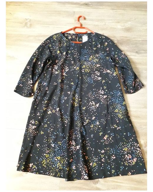 Weekend Max Mara- black swing/ shift mid- length cady dress. Multicolored flicks print - grey, salmon, blue, khaki. IT 46, UK 14. Has original box, one crack near magnetic closure (photo). Not lined.