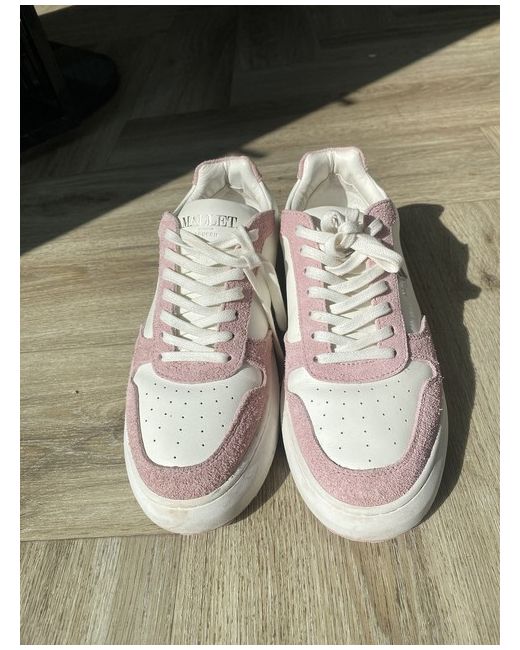 Good quality Mallet pink and silver suede trainers in UK shoe size 6 for women. Worn once, slightly scuffed and staining RRP price £195