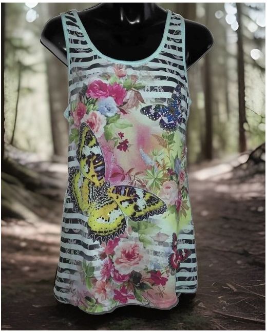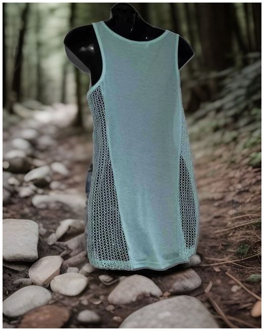 Sequin embellished front. Net lace side. Not high end but very pretty once on. Chiffon front.