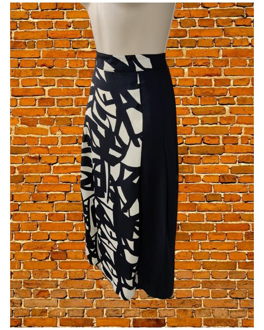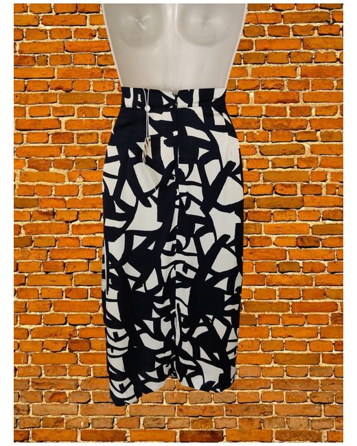 Bnwt Navy Cream Patterned Midi Skirt Uk 10 Small
